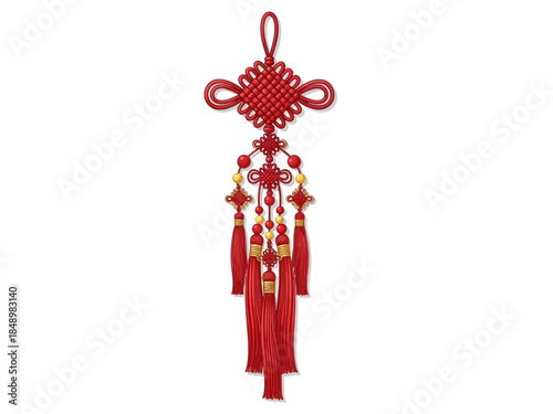 Obraz premium Elegant Red Chinese Knot Ornament - Symbolizing Good Fortune and Prosperity