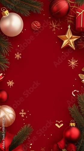 Naklejka premium Elegant Red Christmas Border with Gold Accents and Ornaments holiday festive photo