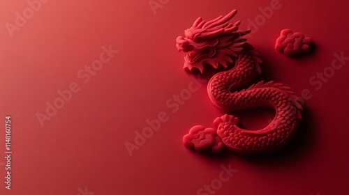 Obraz premium Elegant Red Dragon Sculpture on Vibrant Red Background, Symbolizing Power and...