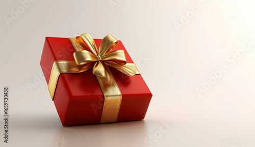 Obraz premium Elegant Red Gift Box with Golden Bow on Soft Neutral Background