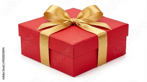 Obraz premium Elegant Red Gift Box with Golden Ribbon and Bow.