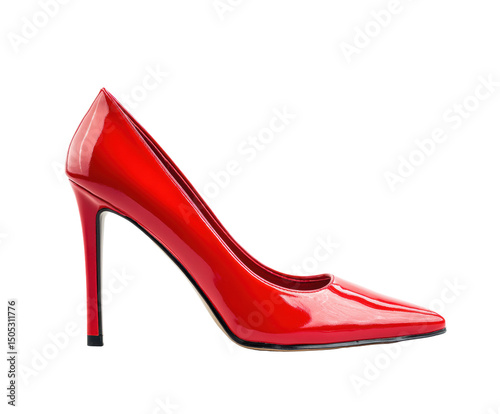 © Anna, Obraz premium Elegant red high heel shoe for fashion enthusiasts and events on a transparent background, cut out
