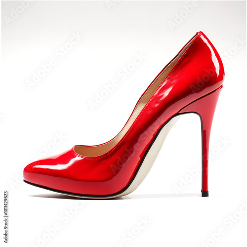 © CaptureCollabStudios, Obraz premium Elegant red high heel shoe on white background