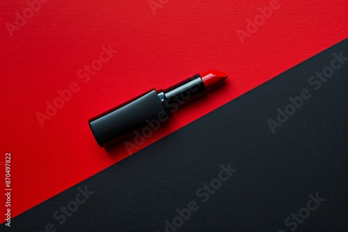 Fototapeta premium Elegant red lipstick on a dual-toned background