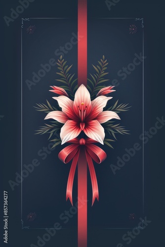 Obraz premium Elegant Red Ribbon Adorned With a Single White Flower