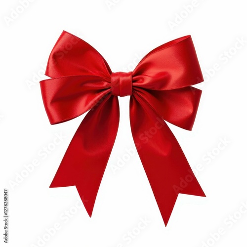 © Grapy Media, Fototapeta premium Elegant Red Ribbon Bow Decoration for Festive Celebrations and Gift Presentation on White Backdrop