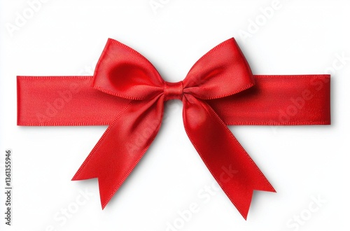 Fototapeta premium Elegant Red Ribbon Bow on White Background for Gift Decoration