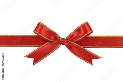 © Rabia, Fototapeta premium Elegant red ribbon bow with gold trim isolated on transparent background