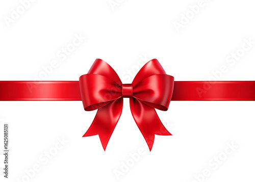 © Gous, Fototapeta premium Elegant red satin ribbon bow centered on a stark black background