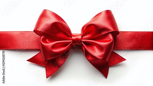 Fototapeta premium Elegant Red Satin Ribbon Bow, Festive Gift Wrap, Special Occasion Decoration, White Background