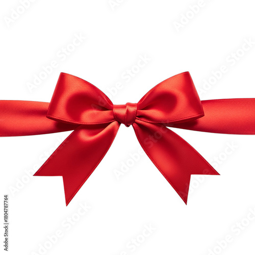 © Creativehub, Fototapeta premium Elegant red satin ribbon bow isolated on transparent background