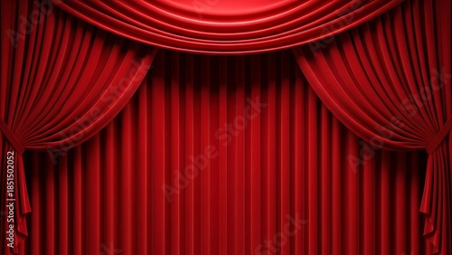 Fototapeta premium Elegant Red Velvet Stage Curtains Drape Open for Performance.