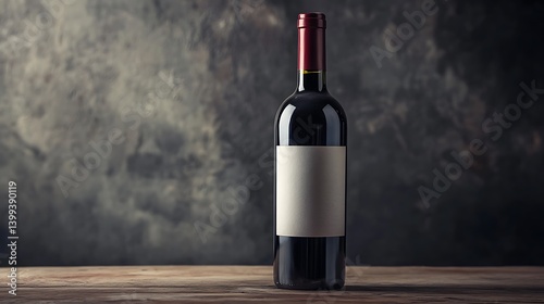 © Anas, Fototapeta premium Elegant Red Wine Bottle on Rustic Wooden Table