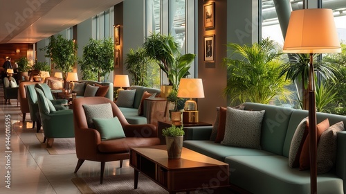 Fototapeta premium Elegant relaxing hotel lounge with lush greenery indoors