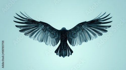 Naklejka premium Elegant Representation of a Simple Black Bird Wing Outline on a Soft Pastel...