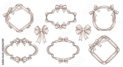Obraz premium Elegant Ribbon Bow Frame Vector Set for Decorative Designs and Festive...