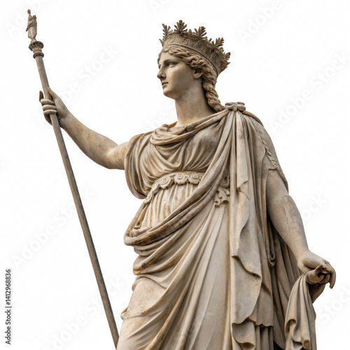 © PNG Stock, Obraz premium Elegant Roman Goddess Juno Statue Crown, Scepter, and Majestic Pose