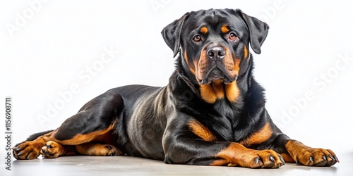 © prapatsorn, Fototapeta premium Elegant Rottweiler Dog Posing on White Background - Studio Shot