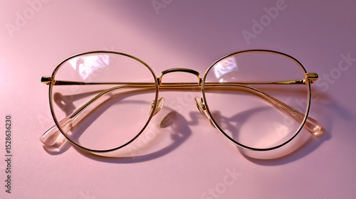 Fototapeta premium Elegant Round Gold-Rimmed Eyeglasses on a Soft Pink Background with Gentle Lighting