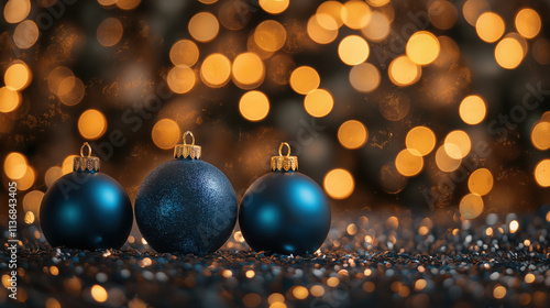 Fototapeta premium Elegant Sapphire Blue Christmas Baubles on a Bokeh Background