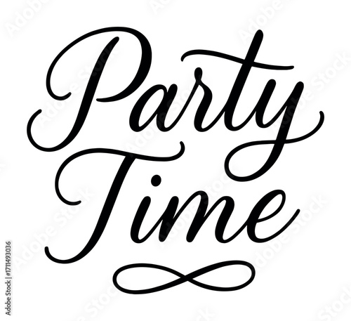 © Igor, Fototapeta premium Elegant script lettering displaying 'party time' in black