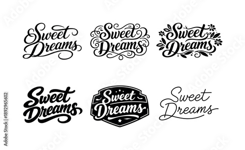 © Viacheslav, Fototapeta premium Elegant Script Variations. classic decorative script set. Set lettering. harmonious lettering variations of the same emblematic concept, each with different