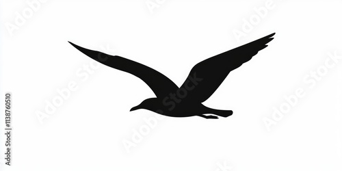 © Serhii, Naklejka premium Elegant Seagull Silhouette: Isolated Artwork of a Bird in Flight on a Clean Background