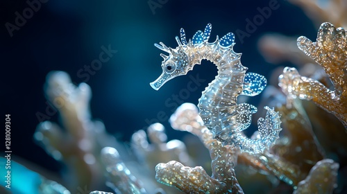 Fototapeta premium Elegant Seahorse Among Vibrant Coral Reef Underwater World