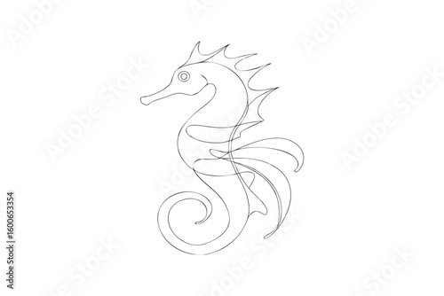 Obraz premium Elegant Seahorse Line Art Illustration on White Background for Creative...