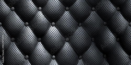 © NTGUILTY, Obraz premium Elegant seamless black leather pattern with stitching and buttons