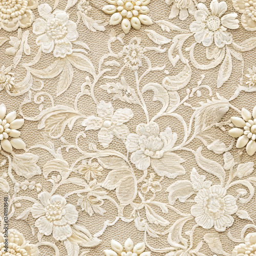 Fototapeta premium Elegant seamless floral lace fabric texture in neutral tones