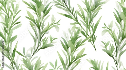 © samantha, Fototapeta premium Elegant Seamless Pattern with Green Rosemary Branches on White Background for Designs