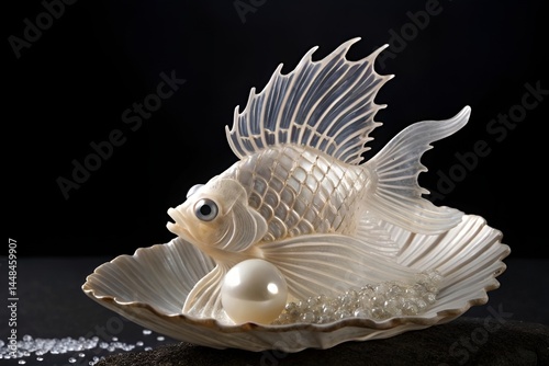 Naklejka premium Elegant Semi-Translucent Fish Sculpture with Pearl Center – Artistic...