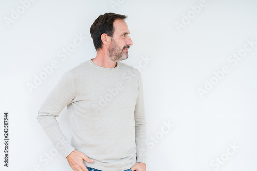© Krakenimages.com, Fototapeta premium Elegant senior man over isolated background looking to side, relax profile pose with natural face with confident smile.