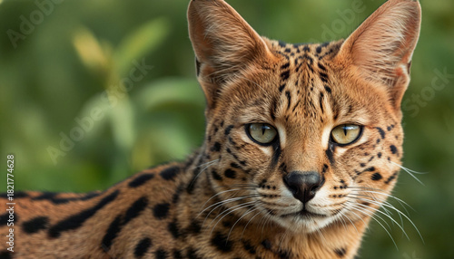 © MEO, Fototapeta premium Elegant Serval Cat Portrait with Lush Green Background and Balanced Lighting
