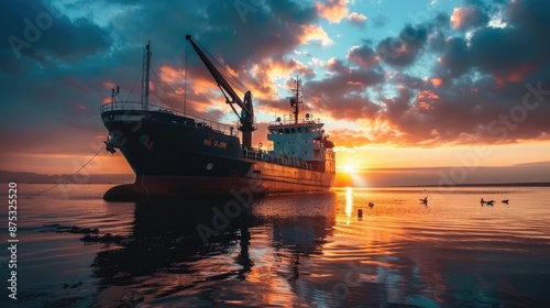 © ShakkBbo9495, Fototapeta premium Elegant Ship with Scenic Sea Background