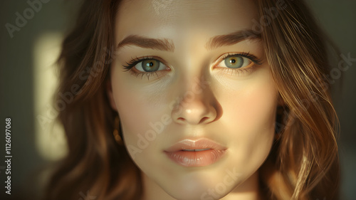 © Duang, Fototapeta premium Elegant side profile of a woman showcasing a luminous complexion against a neutral backdrop