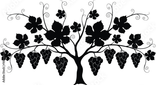 Naklejka premium Elegant Silhouette of Grapevine Tree with Multiple Grape Clusters and Leaves...