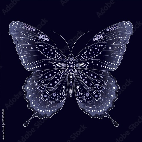 Fototapeta premium Elegant Silver Dotted Butterfly – Futuristic Ornamental Insect with Glowing...