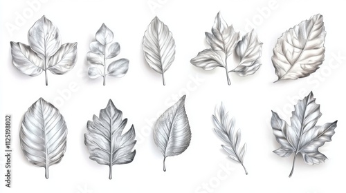 © AlfaSmart, Obraz premium Elegant Silver Leaves Graphic Design