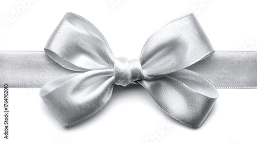 Naklejka premium Elegant silver satin bow with ribbon on a clean white background, perfect for...