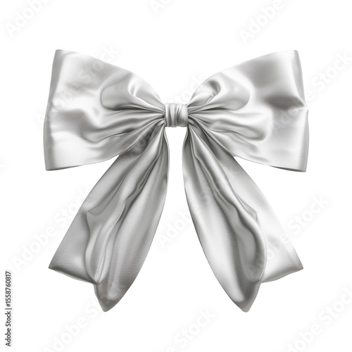 © Tohamina, Naklejka premium Elegant silver satin ribbon bow isolated on black background a perfect gift decoration