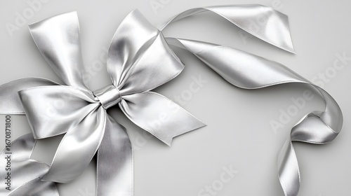Naklejka premium Elegant Silver Satin Ribbon Bow Knot Gift Wrap Decoration