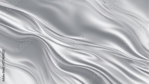 Fototapeta premium Elegant Silver Silk Fabric with Flowing Waves and Smooth Texture.