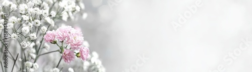 © pornthip, Obraz premium Elegant simplicity, pink flowers in a vase on pristine white background pink