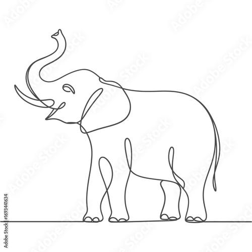 Fototapeta premium Elegant single line drawing of an elephant with trunk raised