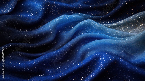 © ice, Fototapeta premium Elegant skeins of navy, sky, and silver yarn against a dreamy bokeh.