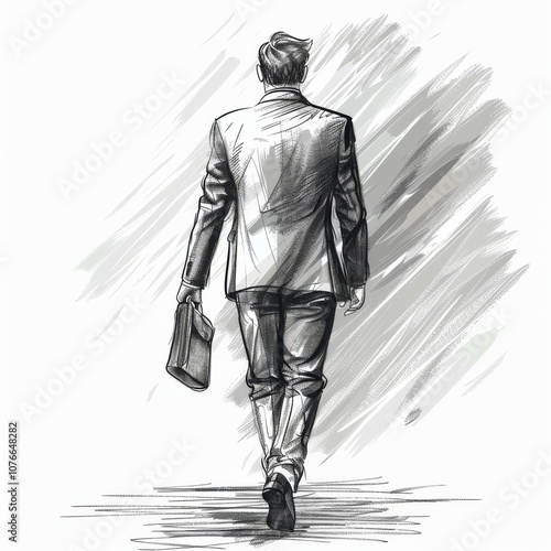 Fototapeta premium Elegant Sketch of a Businessman Walking Away with Briefcase in Hand