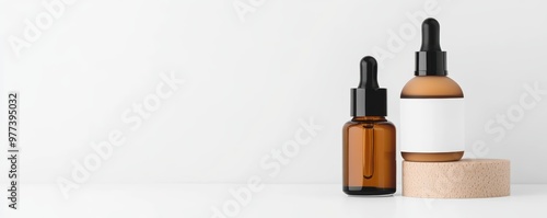 Fototapeta premium Elegant skincare product mockup, magazine-style photography, minimalist design, soft lighting, white background