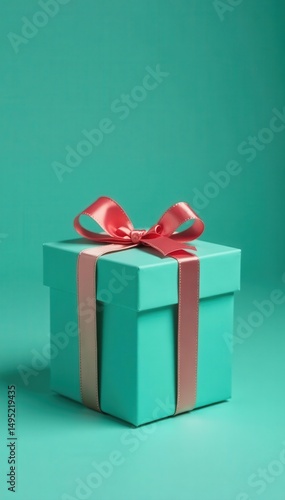 Obraz premium Elegant small gift box, vibrant teal background, craft, cardboard, vibrant